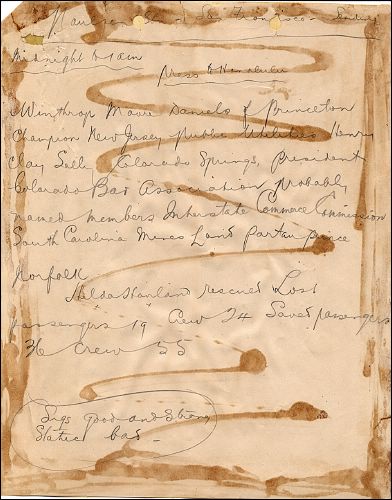 Last of Sarnoff's notes from testing Armstrong's regeneration receiver, January 1914, Belmar, New Jersey