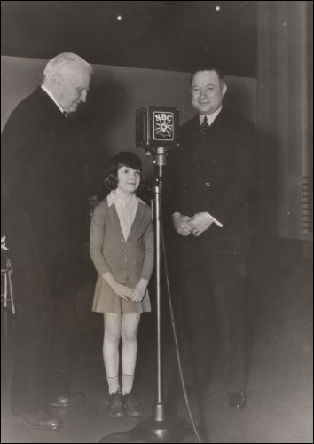 NBC conductor Walter Damrosch, small girl, and David Sarnoff, c. 1935.