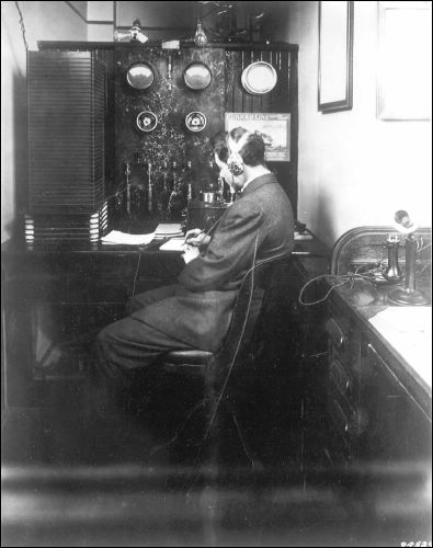 David Sarnoff operating Marconi station at Wanamaker's department store, New York City, fall 1911