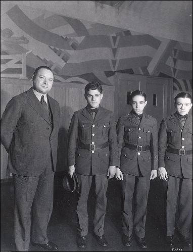 Sarnoff with RCA messenger boys on 25th anniversary of his beginning at the Marconi Wireless Telegraph Company of America, c. September 30, 1931.