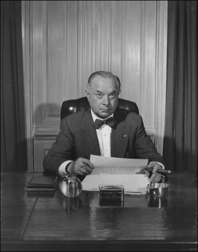 Sarnoff in Rockefeller Center office, September 1948.