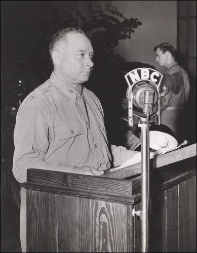 Colonel David Sarnoff, U. S. Army, prepares for NBC broadcast, 1942.