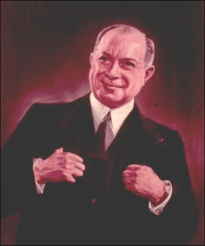 Color painting of Sarnoff adapted from 1947 Karsh photo.