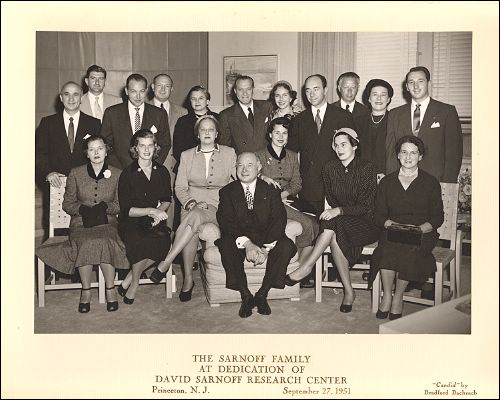 David Sarnoff with Lizette and other family members at dedication of RCA Laboratories in Princeton, New Jersey, as the David Sarnoff Research Center, September 30, 1951; photo by Bradford Bachrach.