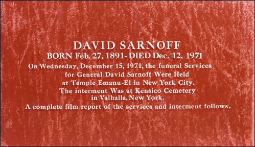 NBC's announcement of Sarnoff's funeral, December 15, 1971.