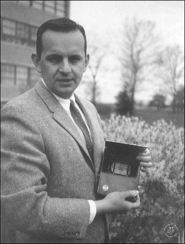 George Heilmeier outside the Princeton Labs showing an LCD. Kept under wraps for another two years, this secret accomplishment helps explain why RCA representatives at liquid-crystal conferences expressed a sometimes-unseemly pride before May 1968.
