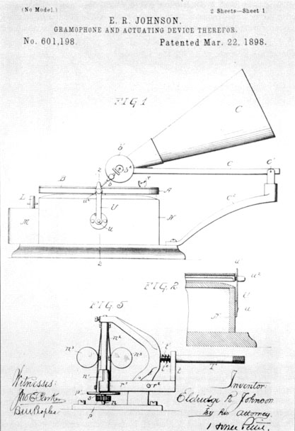 Figure 6 (p. 21)-The first talking machine patent granted to Mr. Johnson on March 22, 1898.