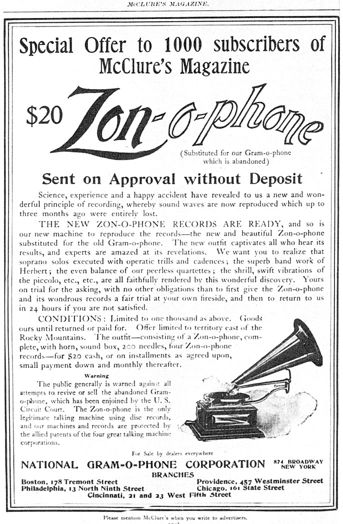 Figure 10 (p. 32)-Zonophone advertisement in the November 1900 issue of McClure's Magazine.